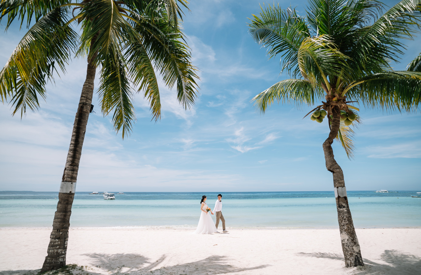 ボホール島フォトウエディング(公共ビーチ) ボホール島には美しいビーチが点在していますが、時期により藻などの海藻、人、ボートが多く撮影に適さないことが少なからずあります。エリスブライダルのボホール島カメラマンはシーズンによる海の状況などを把握していますので穴場の撮影場所をご案内することも可能です。