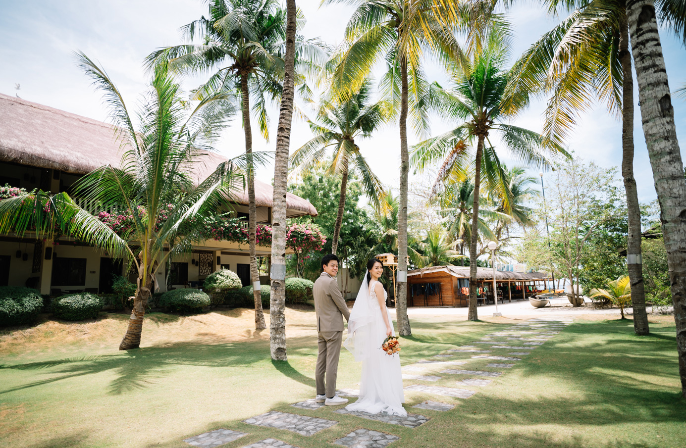 ボホールフォトウエディングB:92,000円(約60分100カット) リゾートホテルへ入場して白砂の広いビーチや美しいガーデンにて撮影します。ランチ付き、撮影後もリゾート内のプールやビーチをお楽しみください。